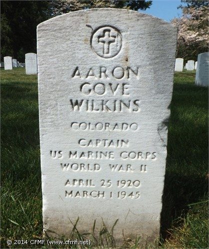 Aaron G. Wilkins was commander, Company A, 1st Battalion, 28th Marines, 5th Marine Division. He was killed leading his men in an assault on Mt. Suribachi on March 1st, 1945. He was posthumously awarded the Silver Star. Aaron was a Denver native, son of James Herbert and Margaret(Gove)Wilkins. He graduated from East Denver High School in 1938 and enlisted in the U.S. Marine Corps Reserve in 1941.